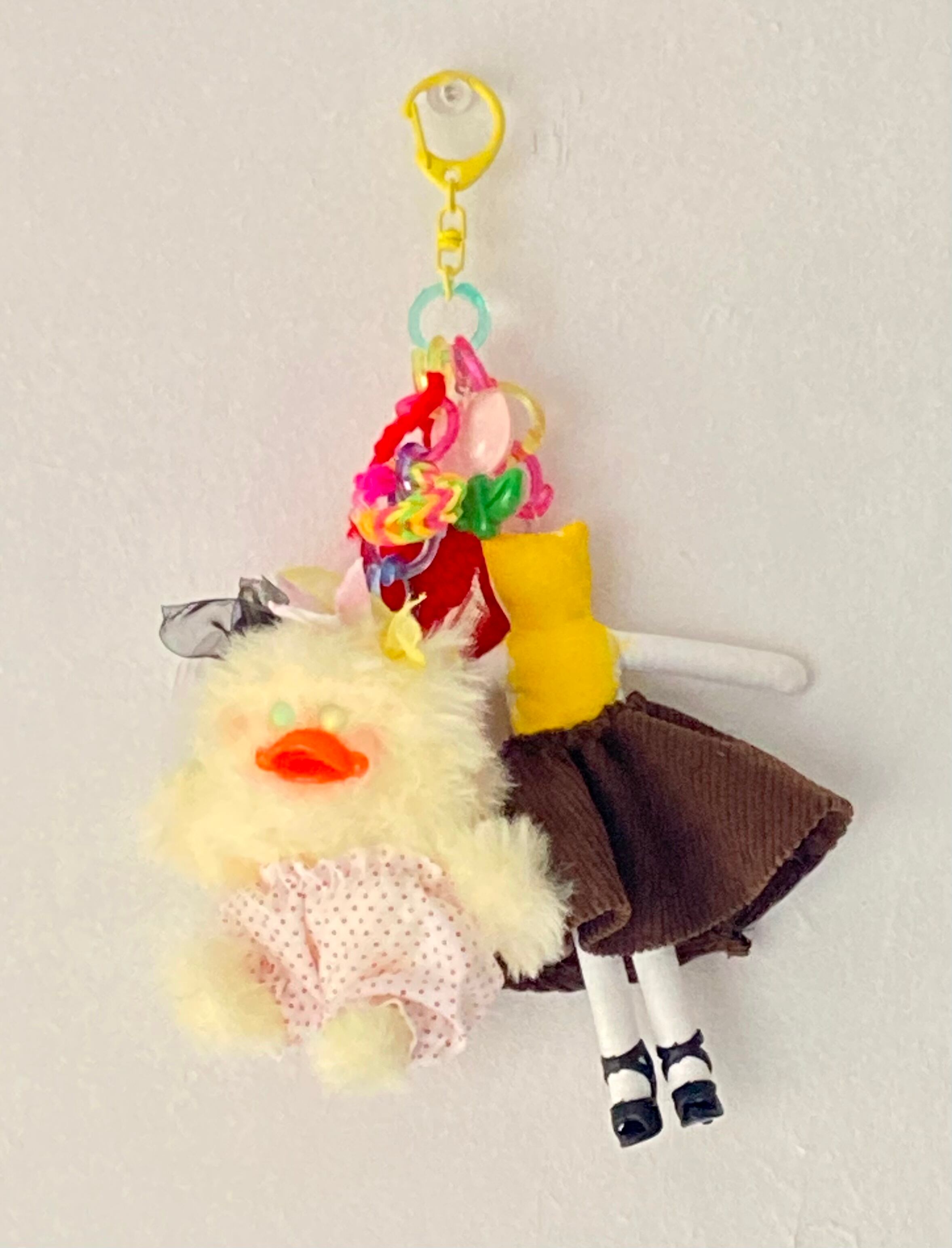In the natural world, it is common for mothers of dogs and cats to raise baby chicks and ducks, so I created this with this in mind. This is a set for two people, but I made it so that when they change their outfits and put a duck on top of the cat mother, it looks like the cat has grown legs. , I think the unbalance of the child's body and thin legs is cute. The charm includes a pacifier and baby bottle in a mother's bag. It comes with a tulip charm, but this one was once cracked, so I glued it on. For some reason I feel like that is cuter than the shiny tulips. Two fashionable and cute people in one set.