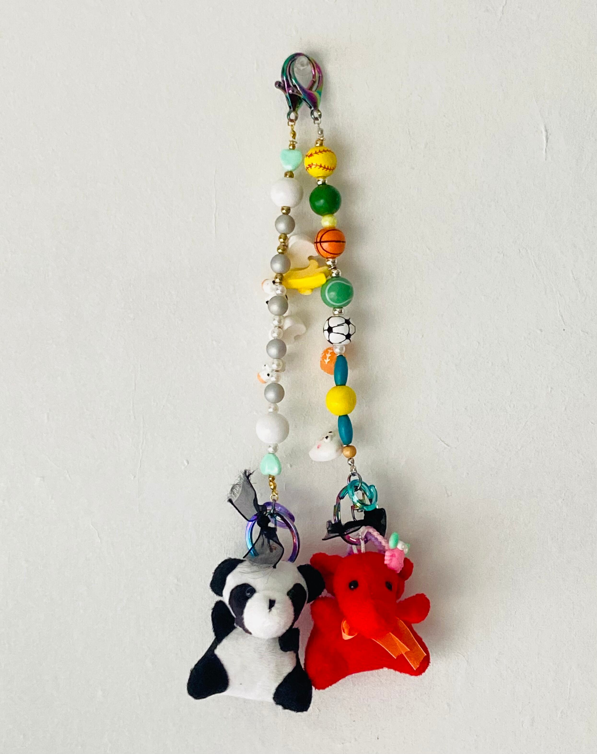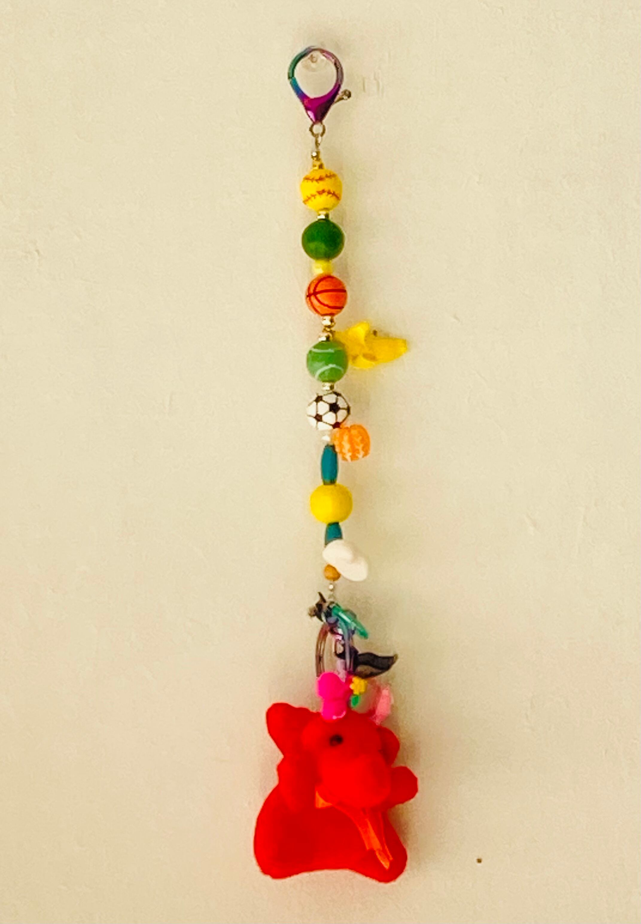 ``TEARS ON MY PILLOW'' Red tapir smartphone shoulder. The design also doubles as a bracelet. It is made by disassembling the parts of the key chain. It is designed to be used as a bracelet, so please use different metal fittings depending on the thickness of your wrist. If you want to use it as a bracelet, we recommend that you hang it on a green chain ring. If you want to attach it to your smartphone or bag, attach it to a metal ring. The parts include two hair ties. This hair tie will come in handy for any occasion. It's jangly and very cute.