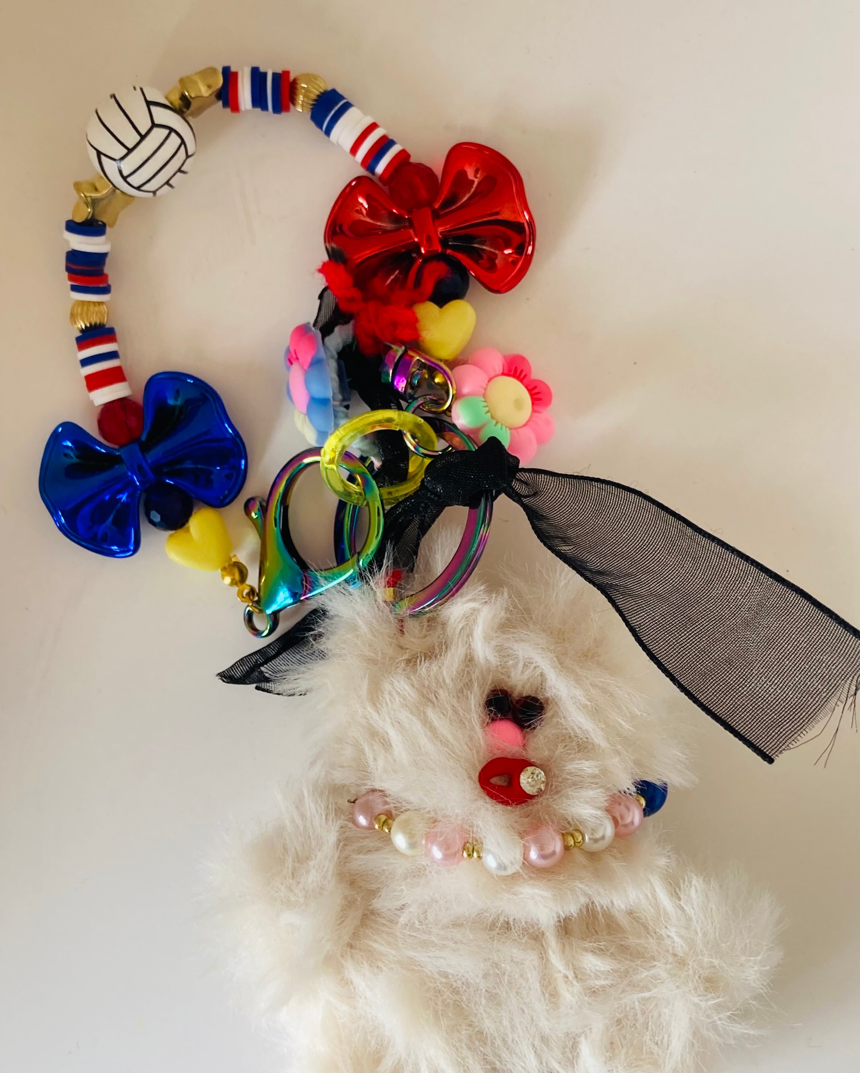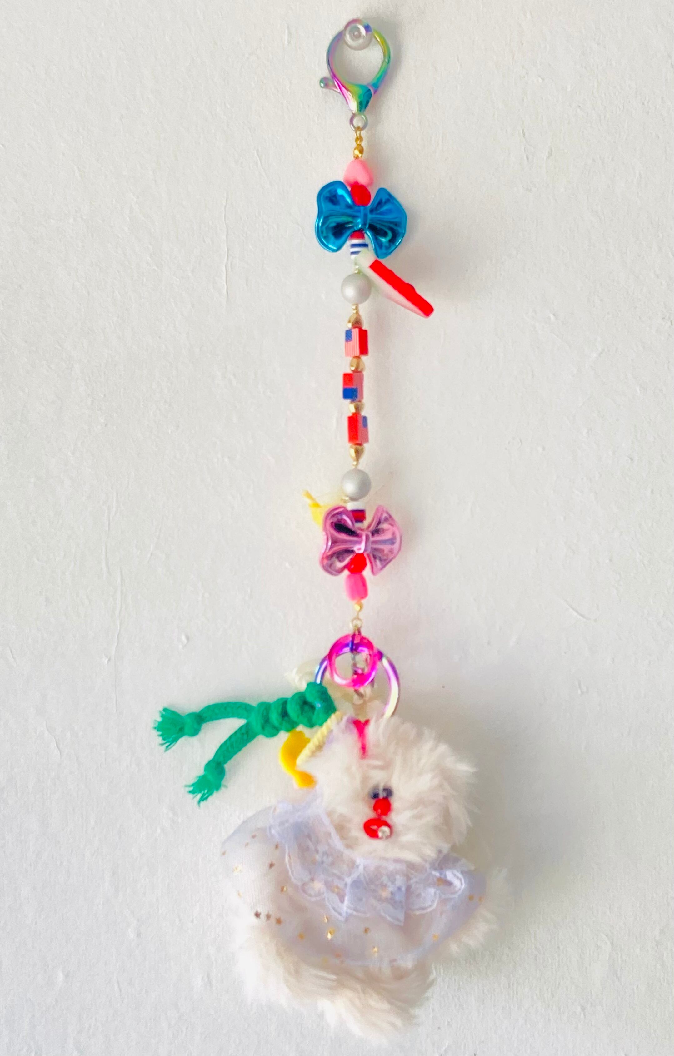 In the natural world, it is common for mothers of dogs and cats to raise baby chicks and ducks, so I created this with this in mind. This is a set for two people, but I made it so that when they change their outfits and put a duck on top of the cat mother, it looks like the cat has grown legs. , I think the unbalance of the child's body and thin legs is cute. The charm includes a pacifier and baby bottle in a mother's bag. It comes with a tulip charm, but this one was once cracked, so I glued it on. For some reason I feel like that is cuter than the shiny tulips. Two fashionable and cute people in one set.