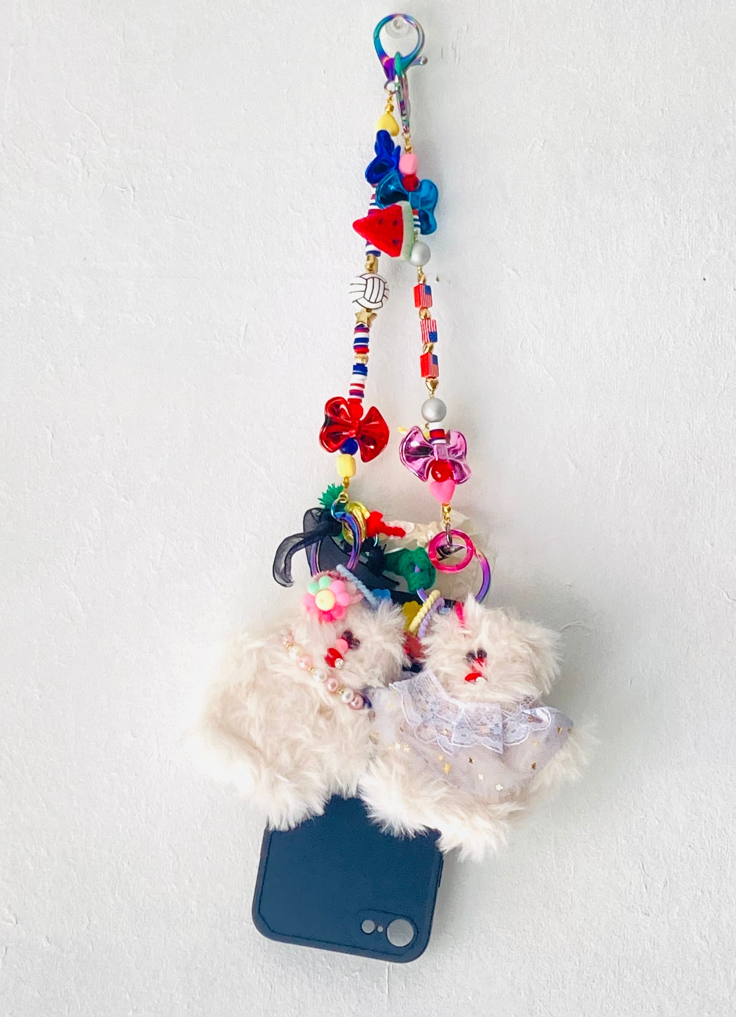 スマホやバッグに付ける場合はメタルのリングにつけて。