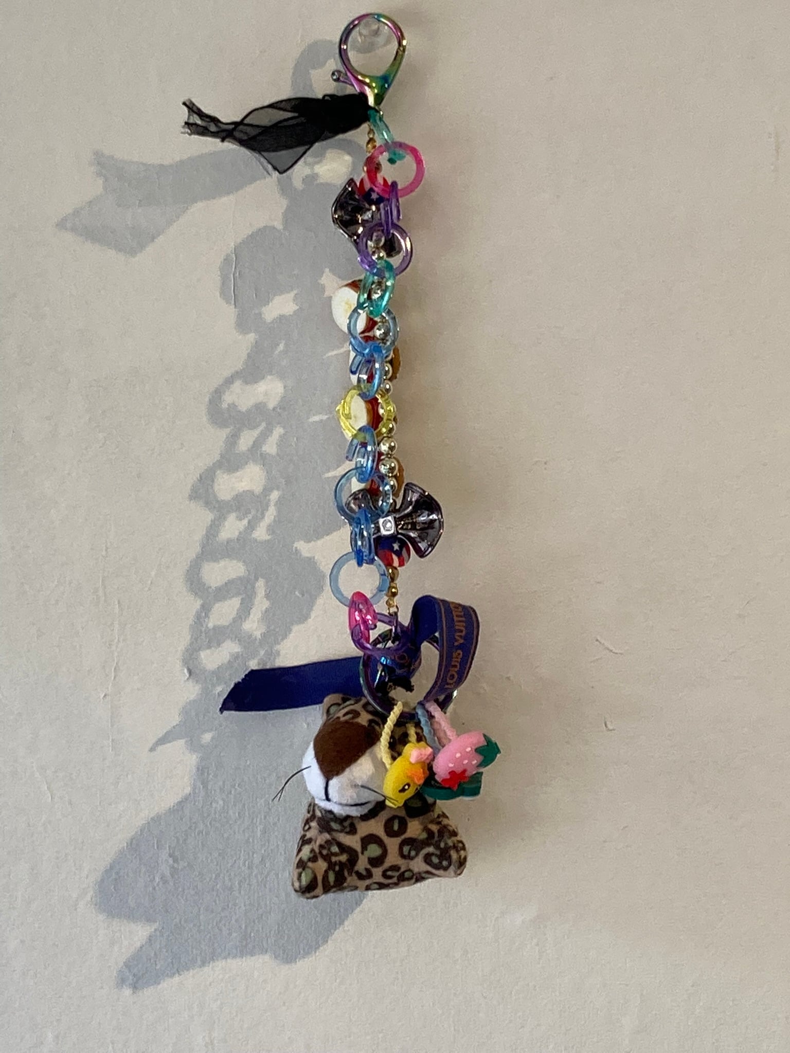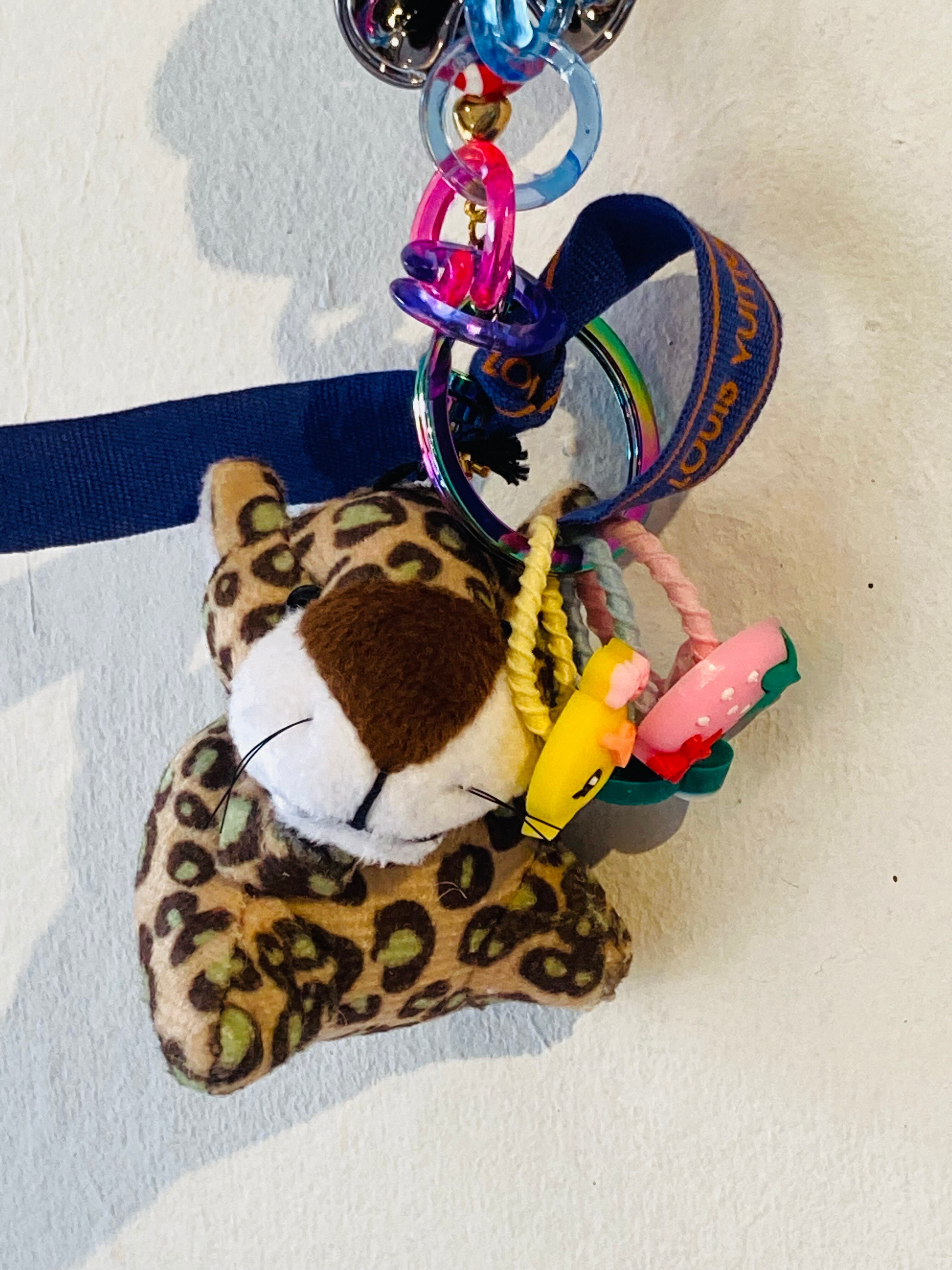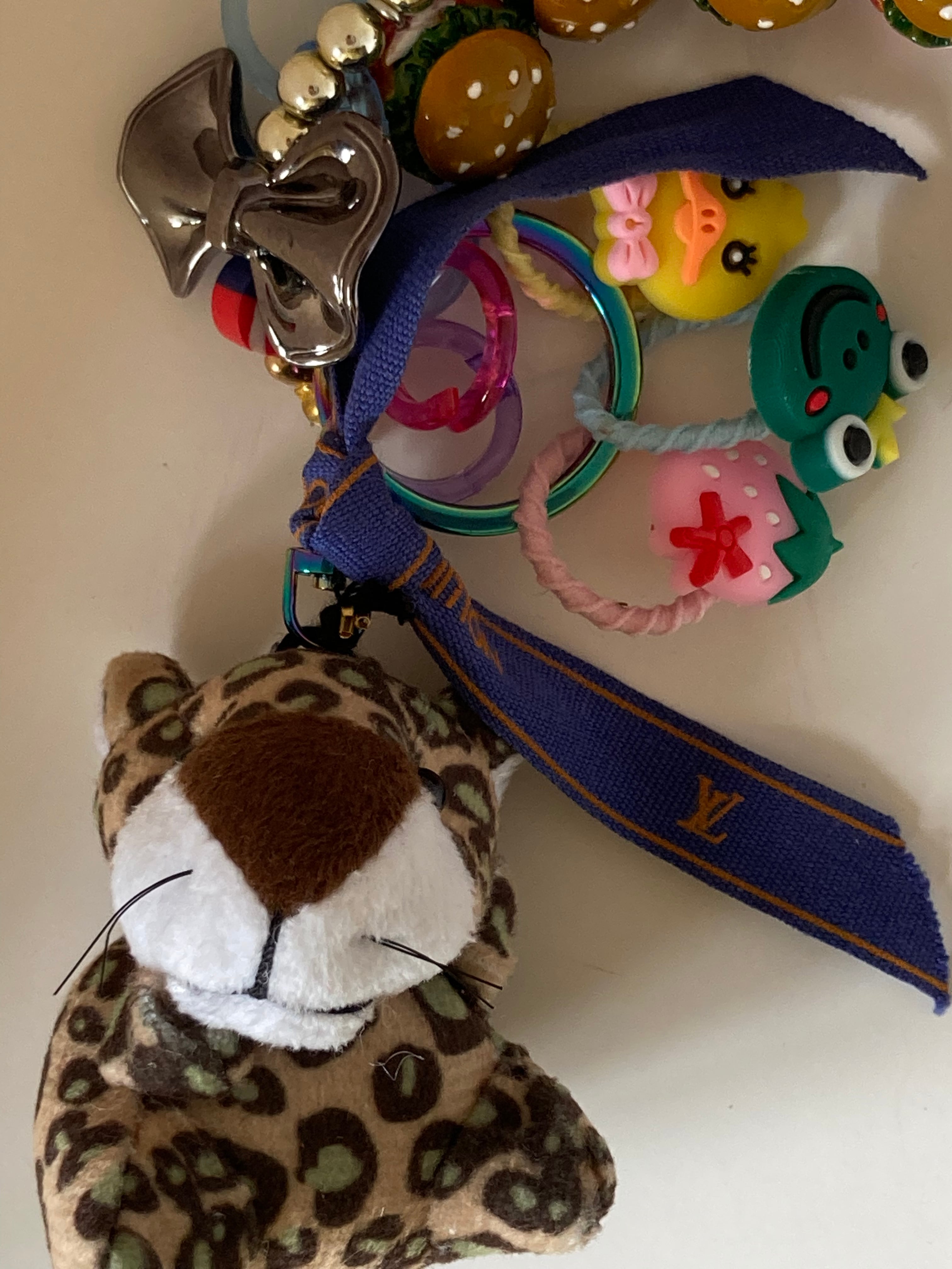 TEARS ON MY PILLOW ﻌﻌﻌ Smartphone Shoulder Bracelet World's Richest Series Louis Vuitton Leopard The design also doubles as a bracelet. It is made by disassembling the key chain parts. It is designed to be used as a bracelet, so please use different metal fittings depending on the thickness of your wrist. If you want to use it as a bracelet, we recommend that you hang it on a green chain ring. If you want to attach it to your smartphone or bag, attach it to a metal ring. The parts include 3 hair ties. This hair tie will come in handy for any occasion. It's jangly and very cute. This is leopard with Louis Vuitton's ribbon from the World's Richest Series. Behind the leopard doll are the initials LV in rhinestones. Of course it's fake.